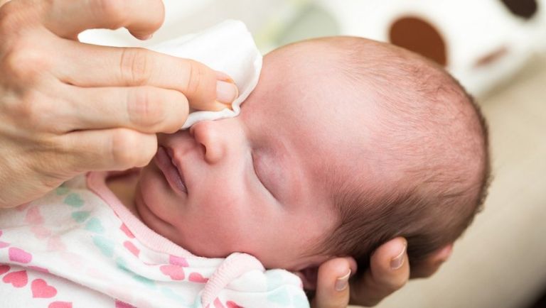 Mắt là giác quan quan trọng và nhạy cảm trong những năm đầu đời. Vì vậy khi vệ sinh mắt cho bé cần được thực hiện nhẹ nhàng với bông gạc vô khuẩn và nước muối sinh lý chuyên sử dụng trong vệ sinh mắt ở trẻ sơ sinh. Phụ huynh nên vệ sinh mắt cho trẻ 3 lần 1 ngày bao gồm: buổi sáng sau khi trẻ thức dậy, sau khi trẻ tắm và buổi tối trước khi trẻ ngủ.