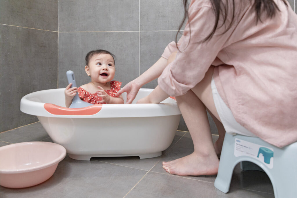 Khi tắm, cần đảm bảo đầu của trẻ luôn được nâng đỡ và tuyệt đối không để bé một mình khi tắm vì điều này rất nguy hiểm cho bé. Sau khi tắm xong, hãy nhẹ nhàng nâng bé ra và vỗ nhẹ cho da khô, rồi dùng khăn mềm lau toàn thân cho bé.