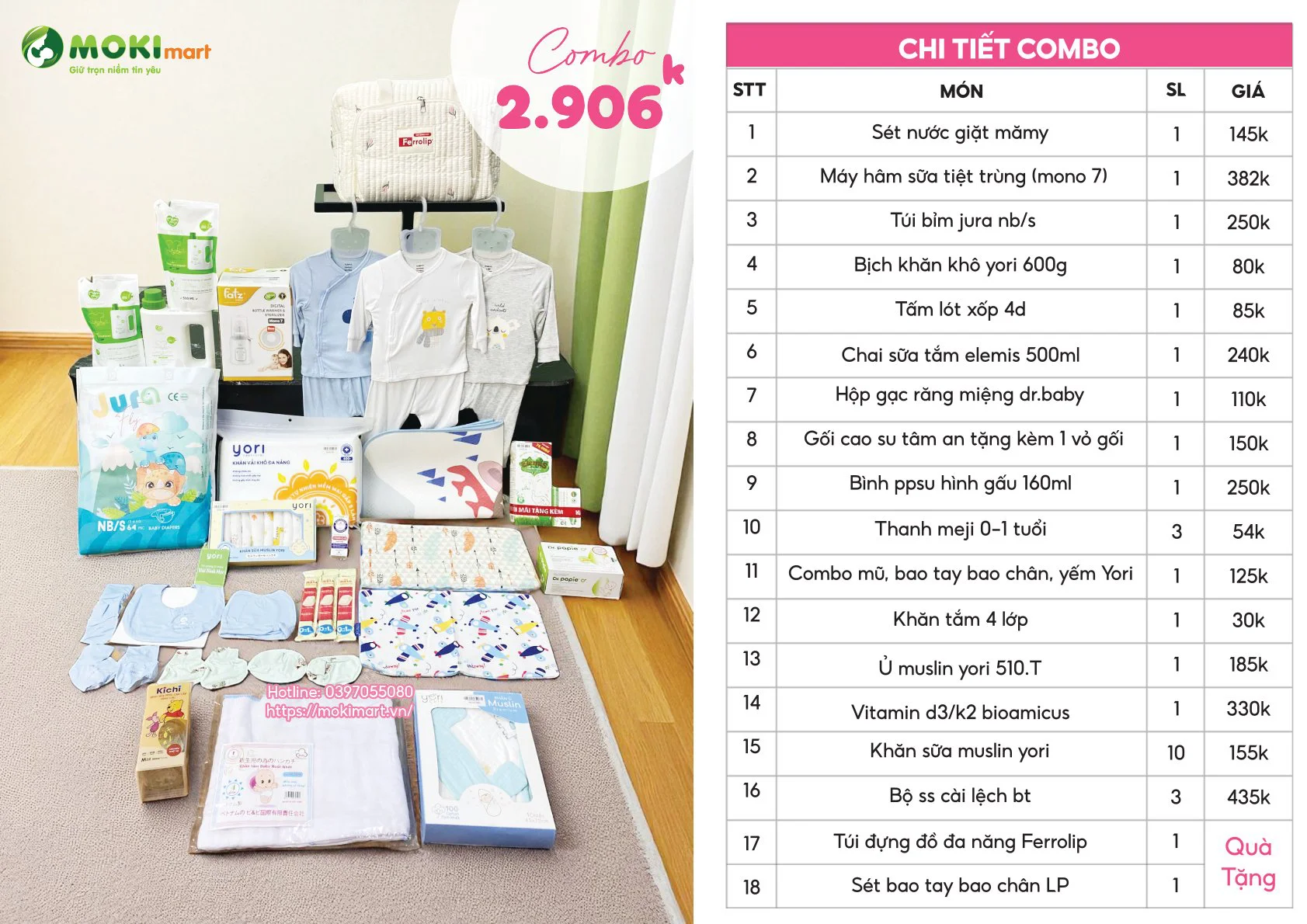 - Sữa tắm, gội cho bé sơ sinh: 1 chai.