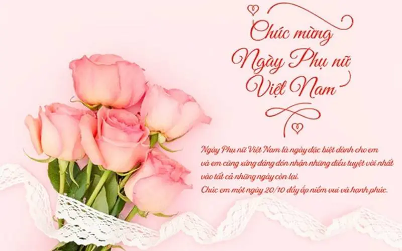 2. Ngày Phụ nữ Việt Nam là dịp để em tỏ lòng biết ơn và yêu thương đến chị. Mong rằng chị sẽ luôn có niềm vui và hạnh phúc và gặt hái được nhiều thành công trong tương lai.