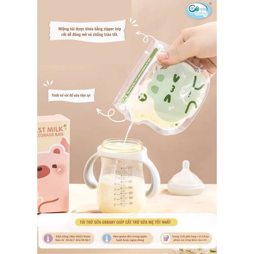 (Bản Mới) Túi Trữ Sữa GB-Baby 120ml 200ml 2 Khóa Zipper Có Vòi Công Nghệ Chất Lượng Hàn Quốc
