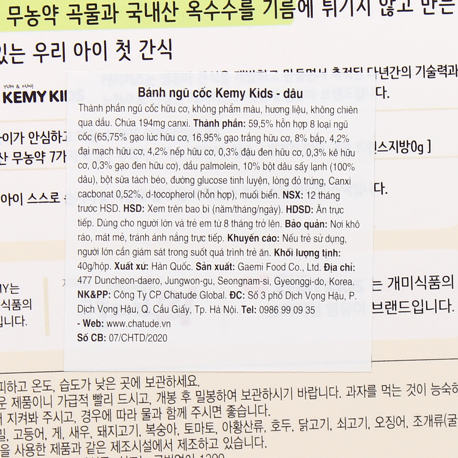 Bánh ngũ cốc Kemy Kids vị Dâu dành cho bé trên 8 tháng