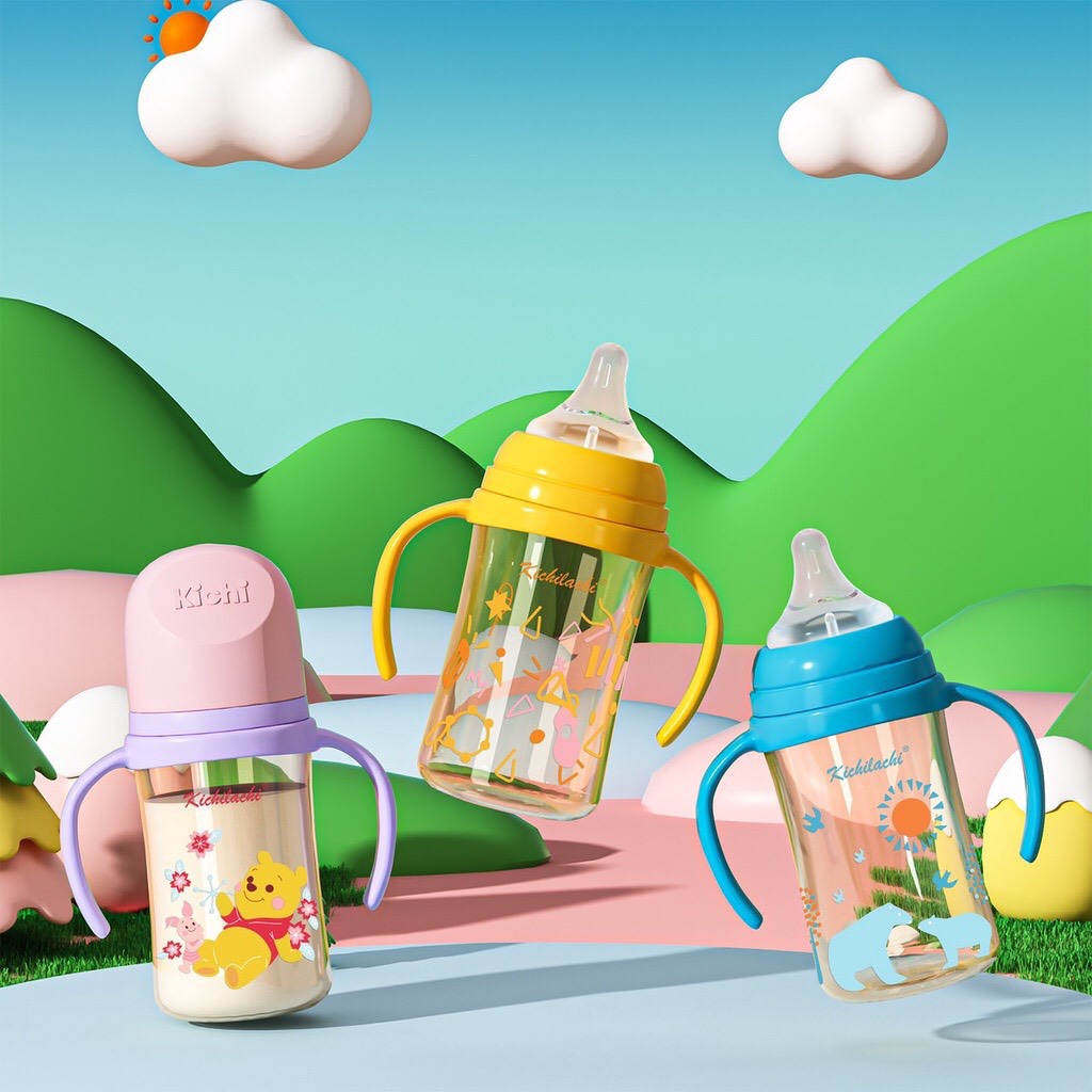 Bình Sữa Cổ Rộng Kichilachi PPSU Plus THẾ HỆ III, dung tích 160ml/240ml/300ml có quai cầm.