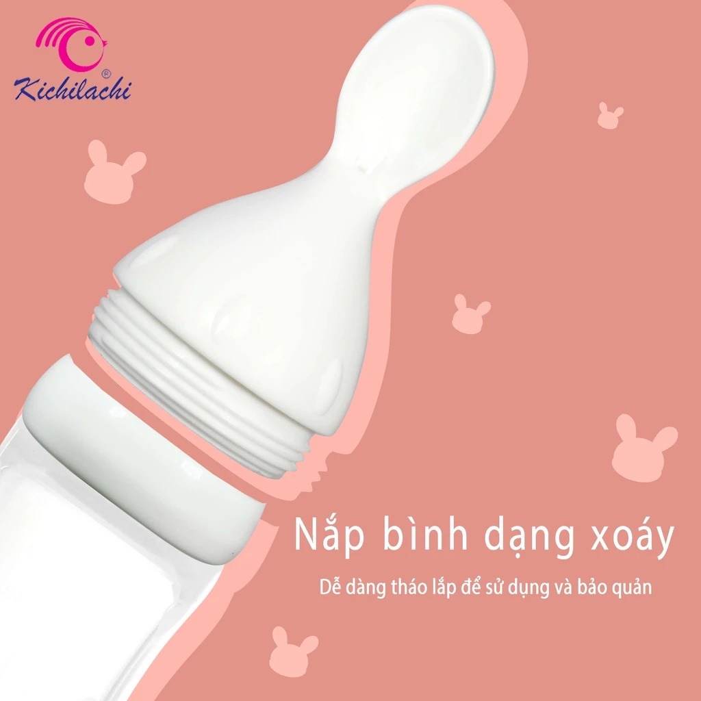 - Bình có muỗng với rãnh ở cán dùng đút bột hoặc thức ăn đặc cho trẻ, khi dùng chỉ đơn giản bóp nhẹ vào thân bình.
