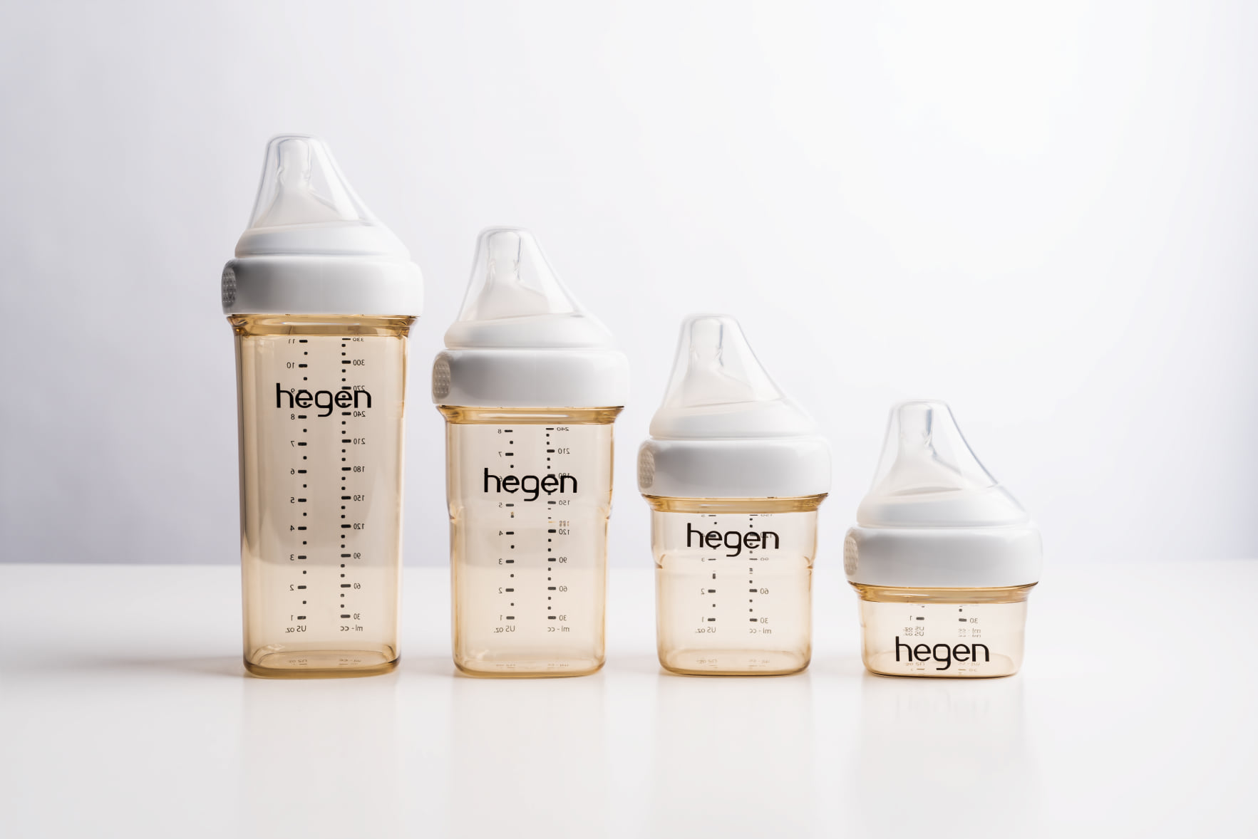 Nắm bắt được nhu cầu sữa cần thiết để đáp ứng cho bé trong từng giai đoạn phát triển, Hegen đã sản xuất 4 loại bình sữa với các dung tích khác nhau, đảm bảo mang đến cho ba mẹ sự thuận tiện nhất trong quá trình chăm sóc con nhỏ.
