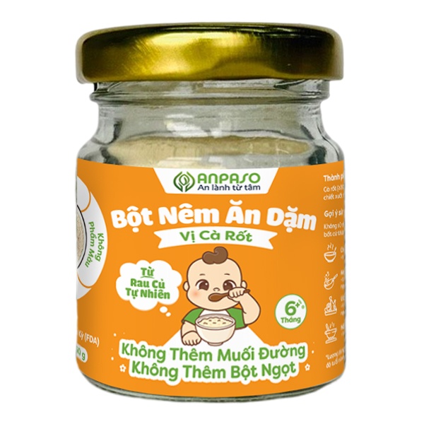 Bột nêm ăn dặm Anpaso cà rốt giúp trẻ dể hấp thụ và kích thích ăn ngon hơn