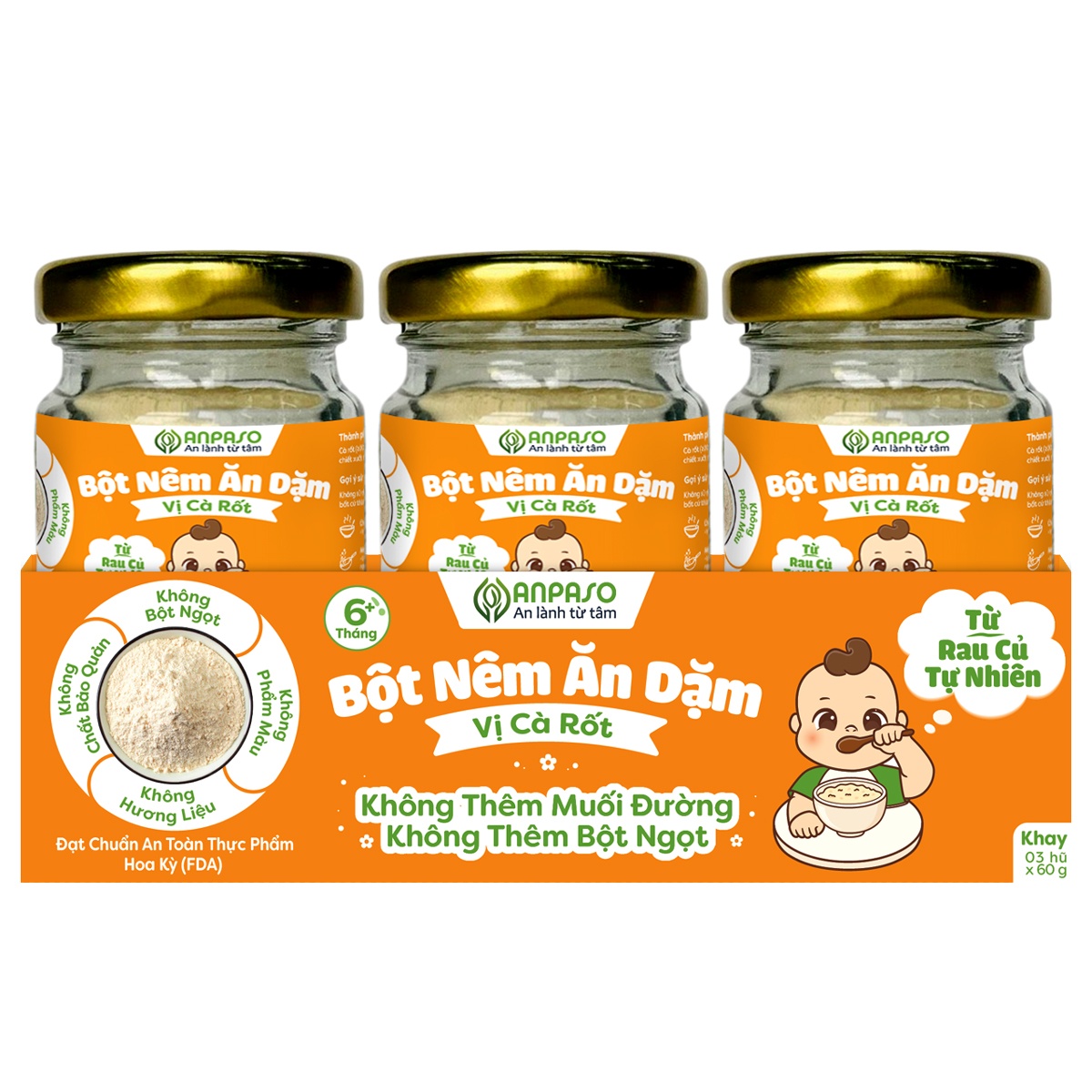 Công dụng bột nêm ăn dặm Anpaso vị cà rốt 60g