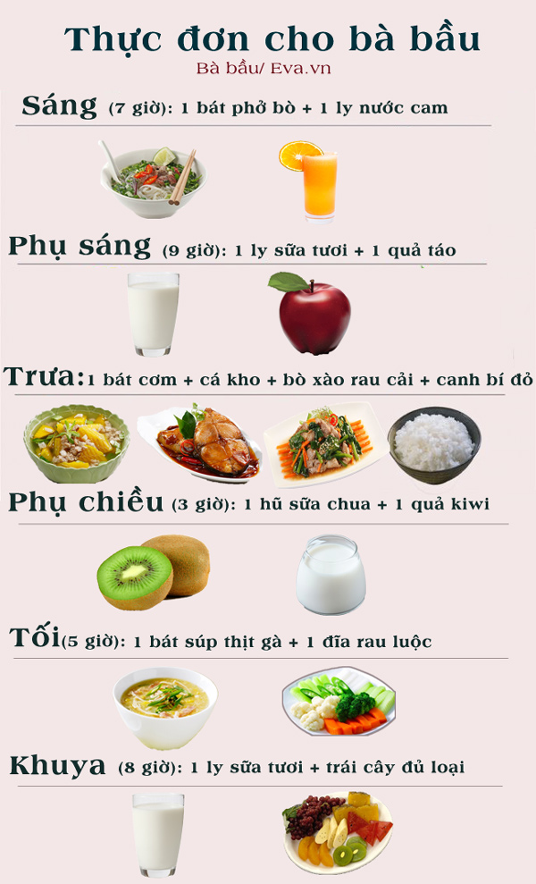 Dưới đây là gợi ý thực đơn cho bà bầu 3 tháng cuối vừa đảm bảo đầy đủ dinh dưỡng vừa tốt cho sức khỏe của mẹ và bé. Cụ thể: