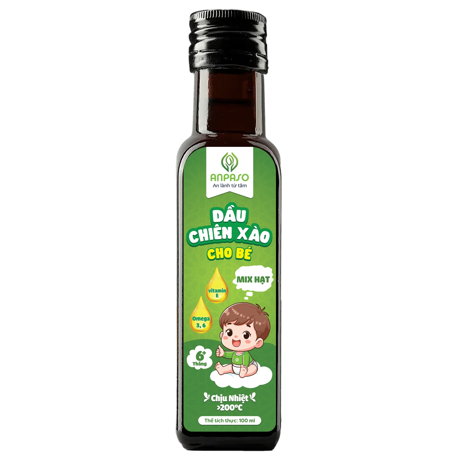 Dầu chiên xào cho bé ăn dặm Anpaso cung cấp Omega-3, Omega-6, phát triển não bộ, hệ thần kinh và sức khỏe tim mạch.