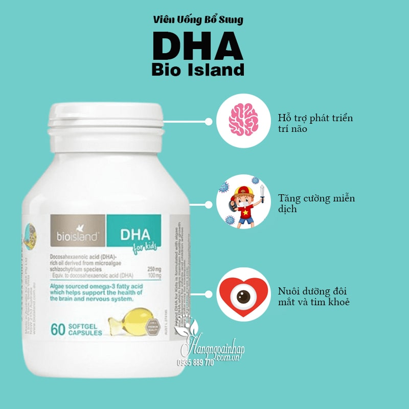 ✔ Dầu cá DHA Bio Island cung cấp hàm lượng chất béo thiết yếu, cần thiết cho sự phát triển não bộ
