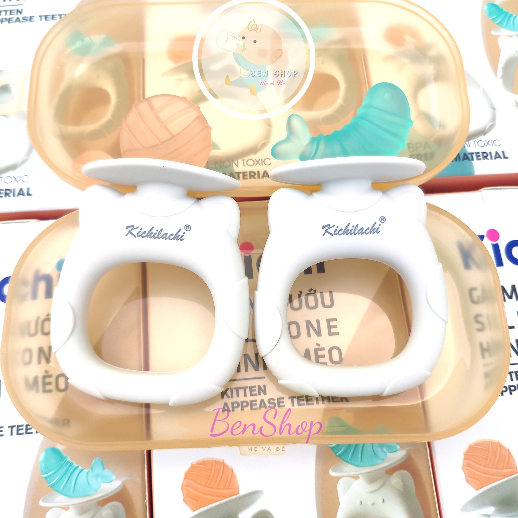 (Mẫu mới) Gặm nướu Silicon Kichi hình mèo (Hộp 2 cái)