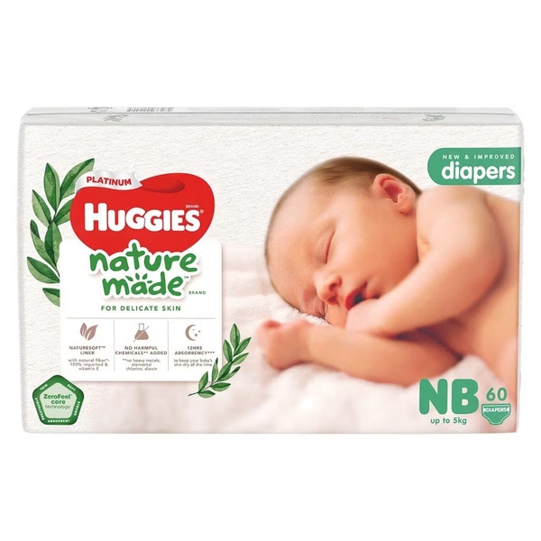 - Tên sản phẩm: Bỉm tã quần Huggies Platinum Nature Made size NB 60 miếng (Dưới 5kg)