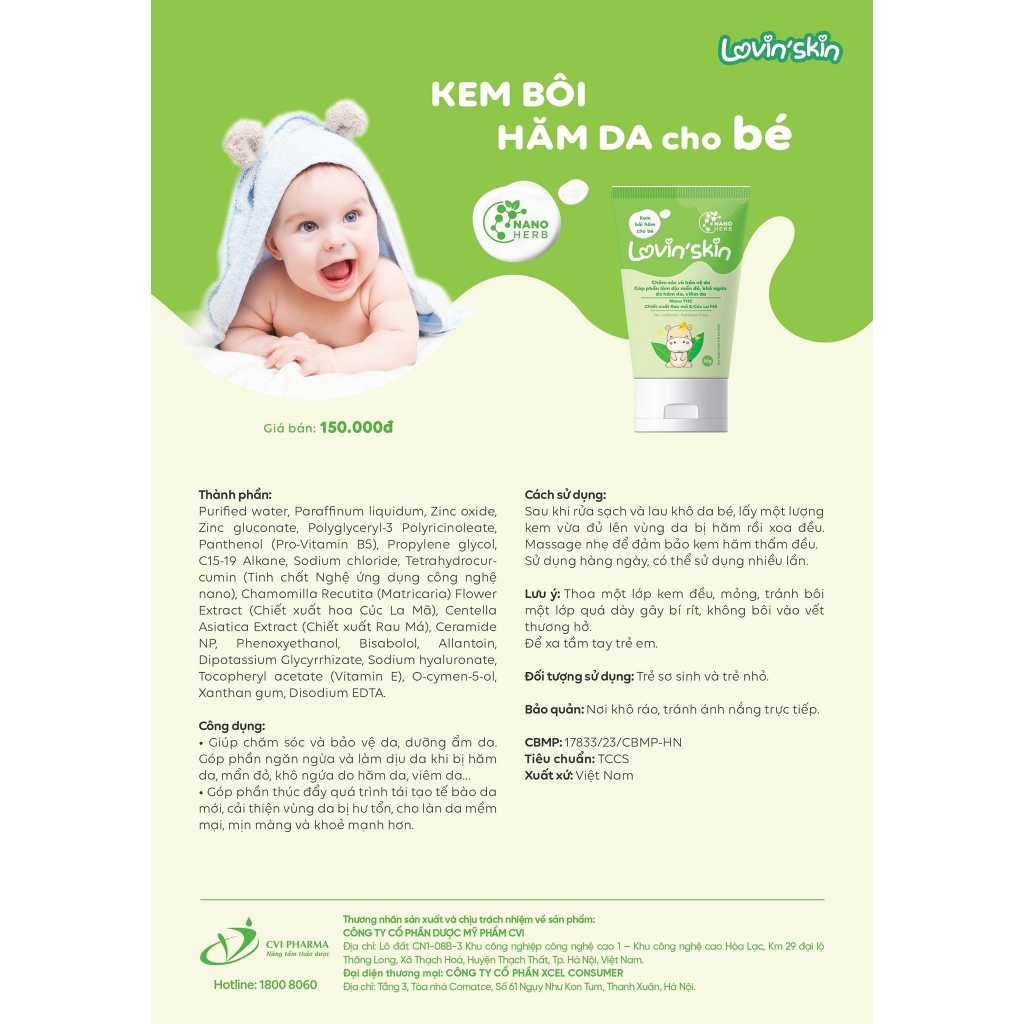 - Giúp chăm sóc và bảo vệ da, dưỡng ẩm da, góp phần ngăn ngừa và làm dịu da khi bị hăm da, mẩn đỏ, khô ngứa do hăm da, viêm da…