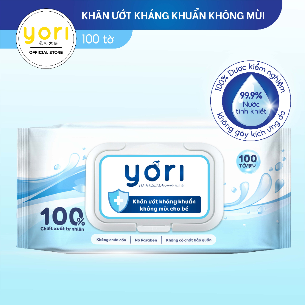 Khăn ướt kháng khuẩn Yori không mùi cho bé 100 tờ