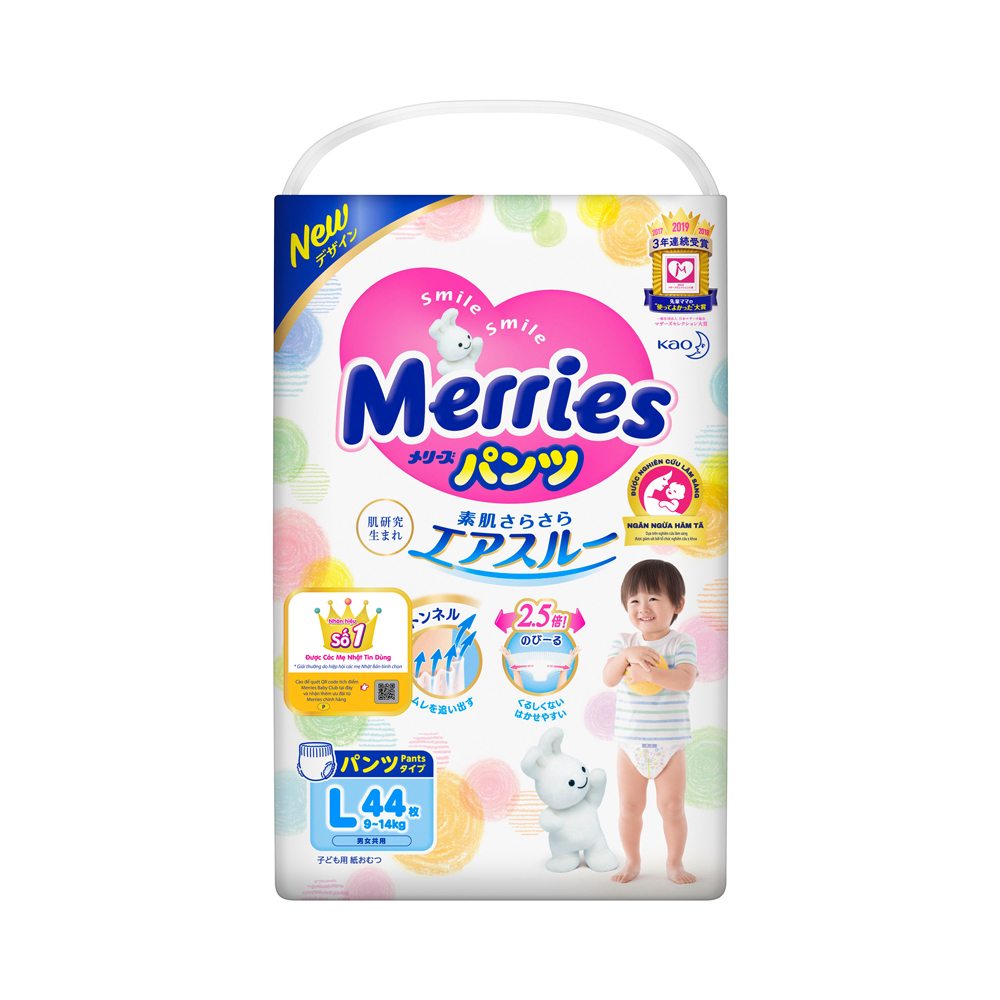 Bỉm tã quần Merries size L 44 miếng (9-14kg)