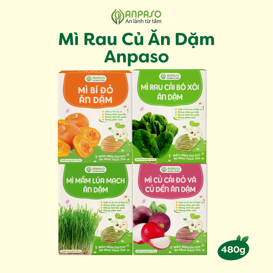 - Dễ tiêu hóa: Một số loại mì rau củ dành cho bé như Mì ăn dặm rau củ Anpaso thường được làm từ nguyên liệu tự nhiên và không chứa chất bảo quản hay phụ gia, thêm chất xơ từ rau củ giúp hệ tiêu hóa của bé hoạt động hiệu quả hơn.