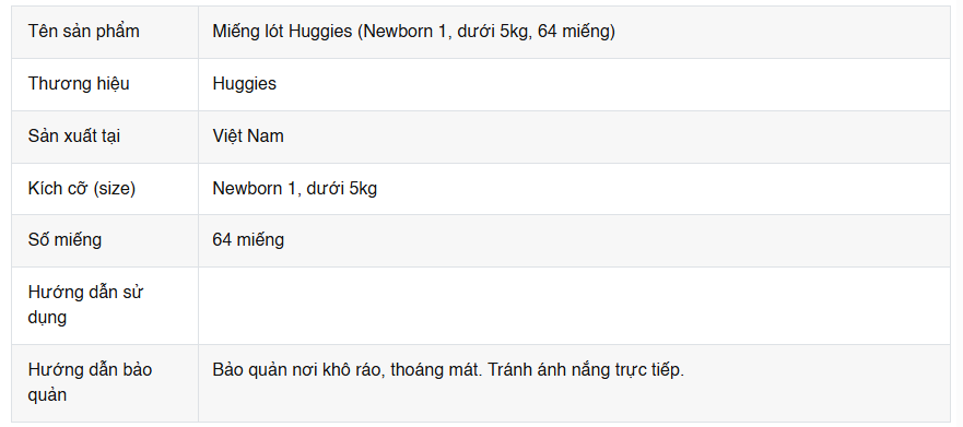 Miếng lót Huggies (Newborn 1, dưới 5kg, 64 miếng) là một sản phẩm rất hữu ích cho các bé sơ sinh.