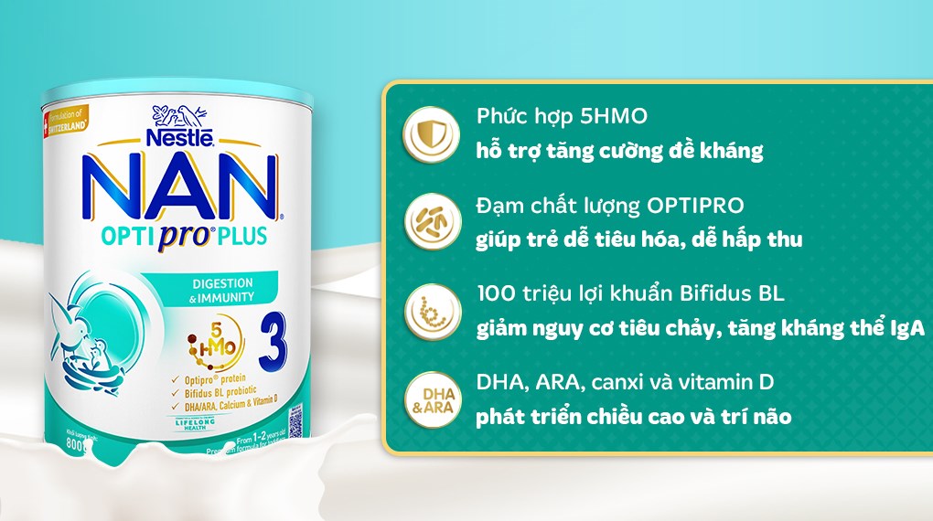 Sữa Nan là sản phẩm thuộc thương hiệu Nestle và có công thức dinh dưỡng từ Thụy Sĩ. Đây là thương hiệu không còn xa lạ tại Việt Nam và nhận được khá nhiều phản hồi tích cực từ mẹ bỉm sữa. Với công thức đặc biệt chứa thành phần OPTIPRO protein, dầu thực vật, huyết thanh, đường glucose cũng giúp bé có hệ tiêu hóa khỏe mạnh hơn, hạn chế tối đa hiện tượng táo bón.
