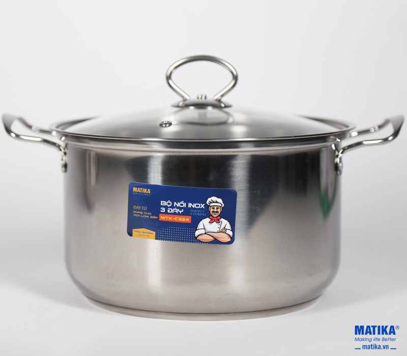 - Với chất liệu bằng inox cao cấp, độ bền cao, nồi inox 3 đáy Matika MTK-C324 hoàn toàn an toàn cho sức khỏe đặc biệt khi nấu ăn ở ở nhiệt độ cao.