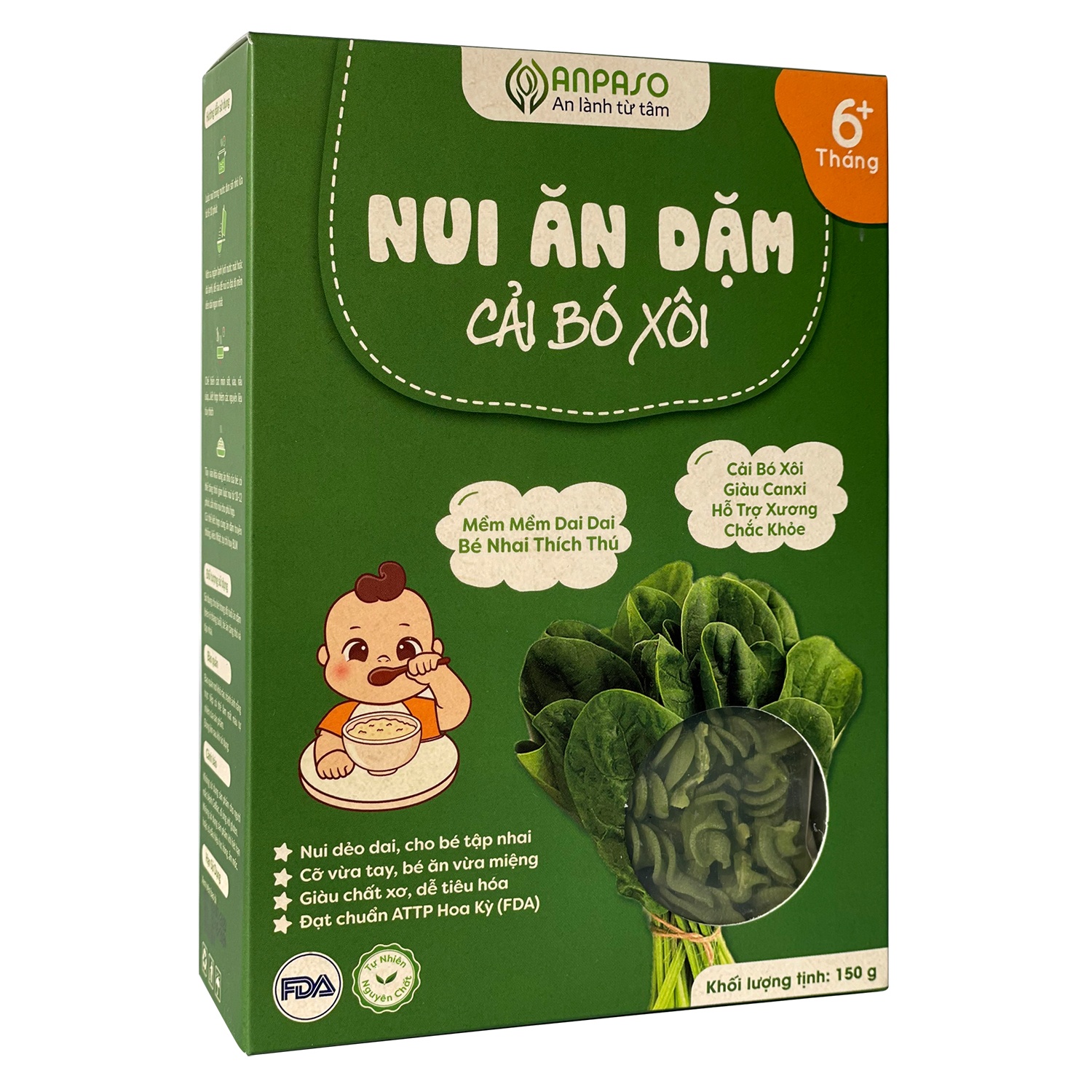 Nui ăn dặm cải bó xôi Anpaso 150g (>6 tháng tuổi)