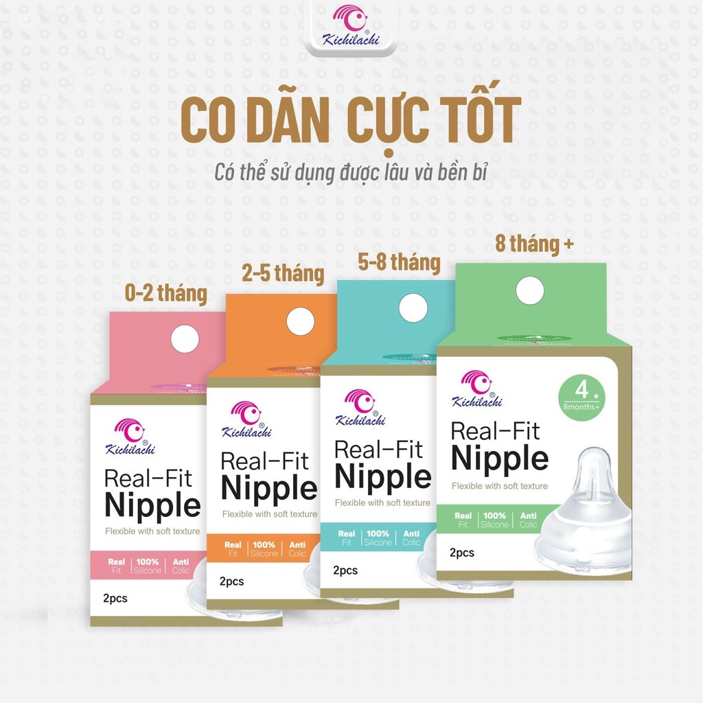 Núm Vú Kichilachi Cổ rộng Plus Real Fit (2- 5 tháng tuổi)