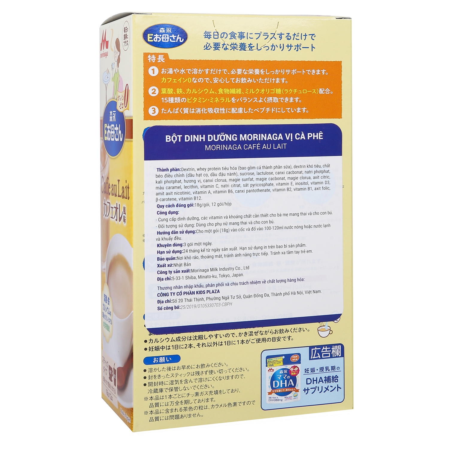 Một hộp sữa bầu Nhật Morinaga có 12 gói sữa bột 18gr.