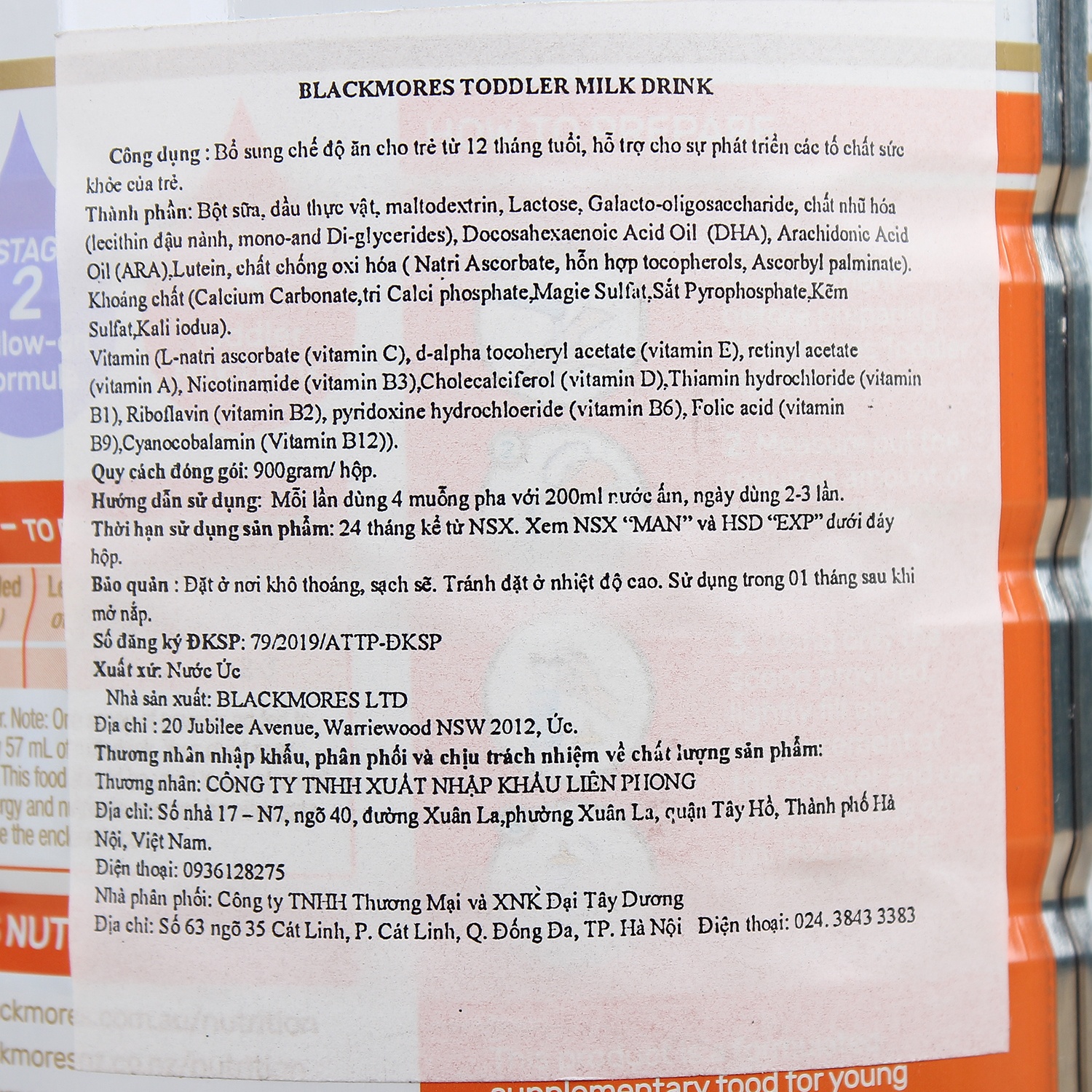 Thành phần chính sữa Blackmores số 3 900g của Úc