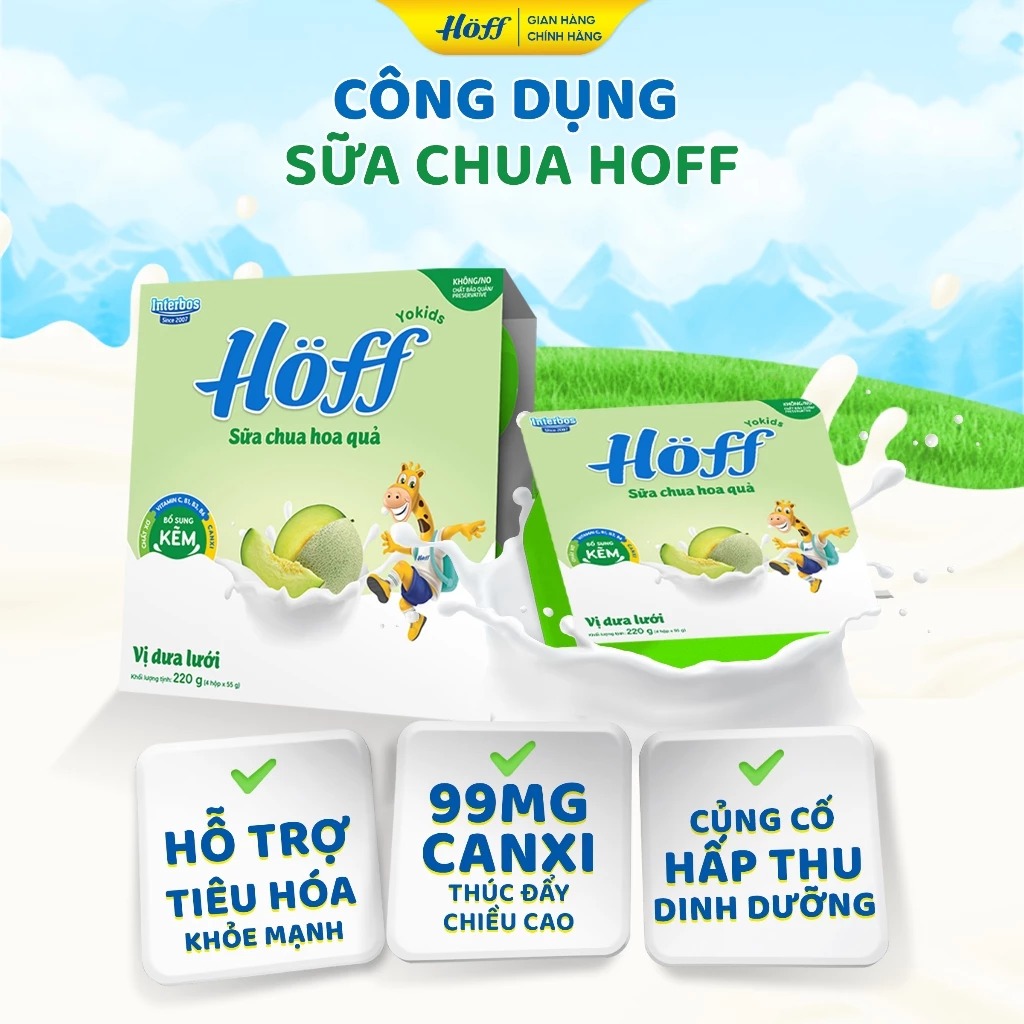 Sữa chua hoa quả Hoff vị Dưa lưới cho bé từ 6 tháng tuổi