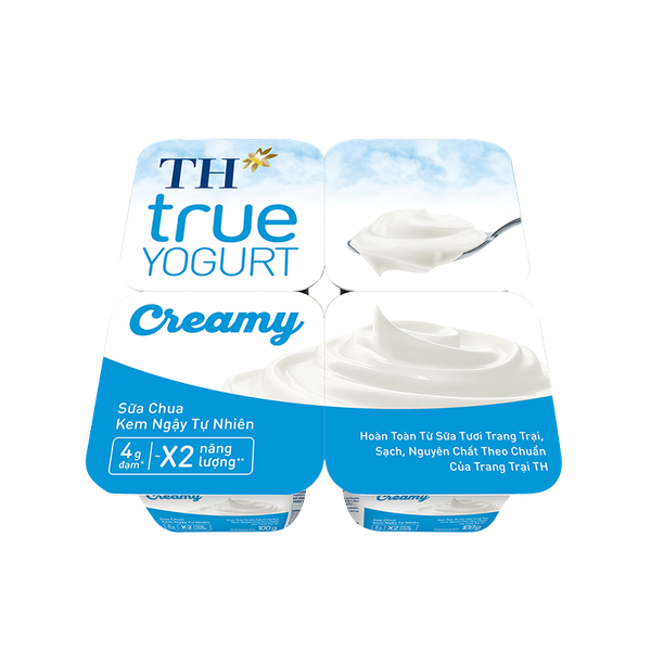 Sữa Chua Kem Ngậy Tự Nhiên TH true YOGURT Creamy 100 g cao cấp, với vị ngon ngất ngây, được lên men tự nhiên, sử dụng hoàn toàn sữa tươi trang trại, sạch, nguyên chất theo chuẩn của trang trại TH. Sản phẩm chứa 4 g đạm trong 100 g sản phẩm, ~X2 năng lượng (so với sữa chua Vị Tự Nhiên TH true YOGURT) cung cấp các chất dinh dưỡng từ sữa tươi và tốt cho sức khỏe của cả gia đình.