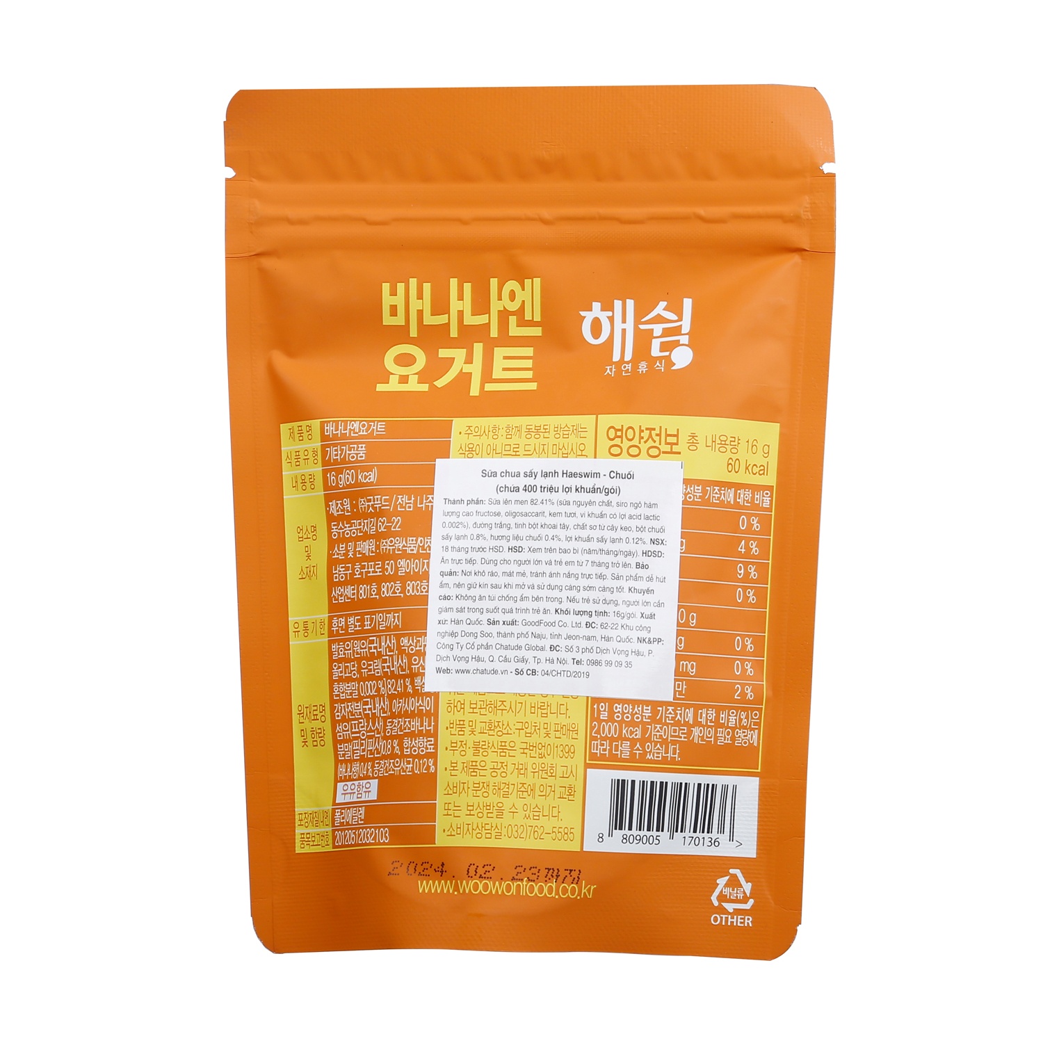 Hướng dẫn bảo quản sữa chua sấy lạnh Haeswim vị chuối: