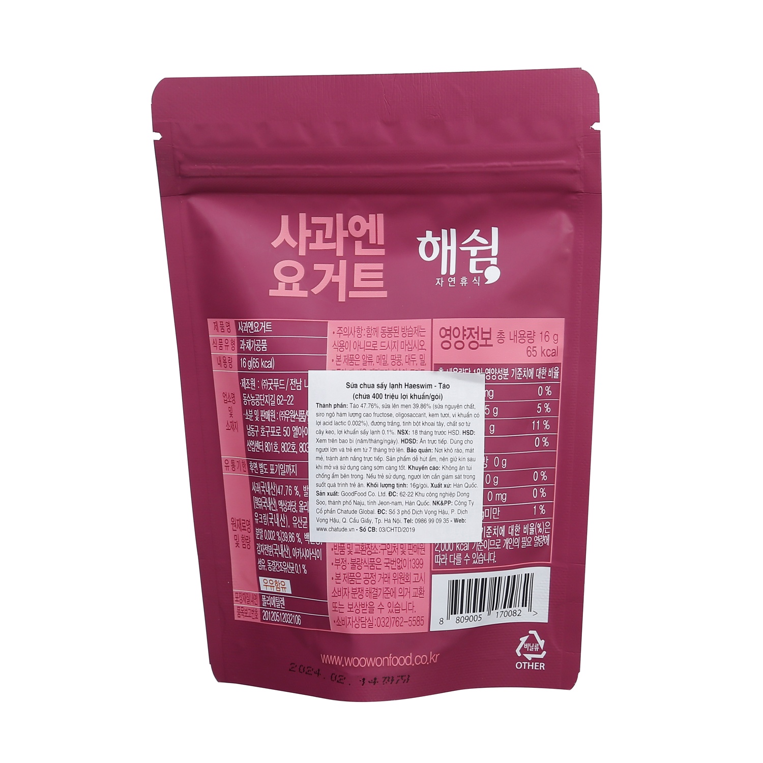 Sữa chua sấy lạnh Haeswim vị táo dạng gói 16g là sản phẩm ăn liền, sử dụng ngay không cần qua chế biến