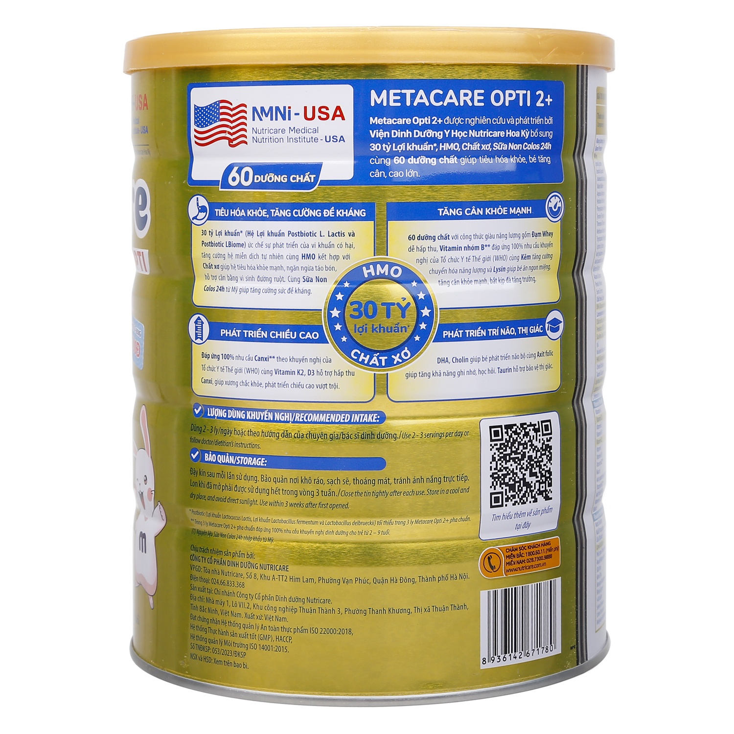 Metacare Opti công nghệ POSTBIOTIC đột phá, cung cấp 30 tỷ lợi khuẩn, HMO và chất xơ giúp hệ tiêu hóa khỏe mạnh. 60 dưỡng chất cùng Đạm Whey dễ hấp thu, Canxi, Vitamin K2, D3 giúp con ăn ngon, tăng cân cao lớn.
