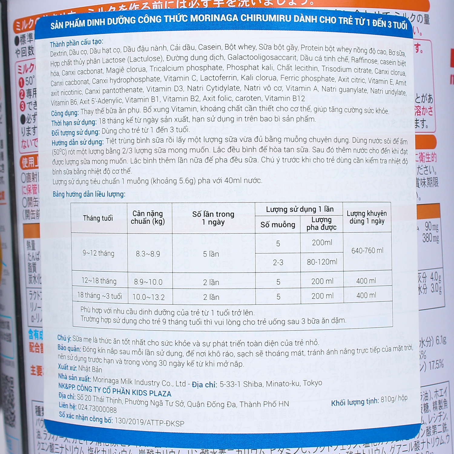 Thành phần sữa Morinaga số 9 nội địa Nhật gồm: