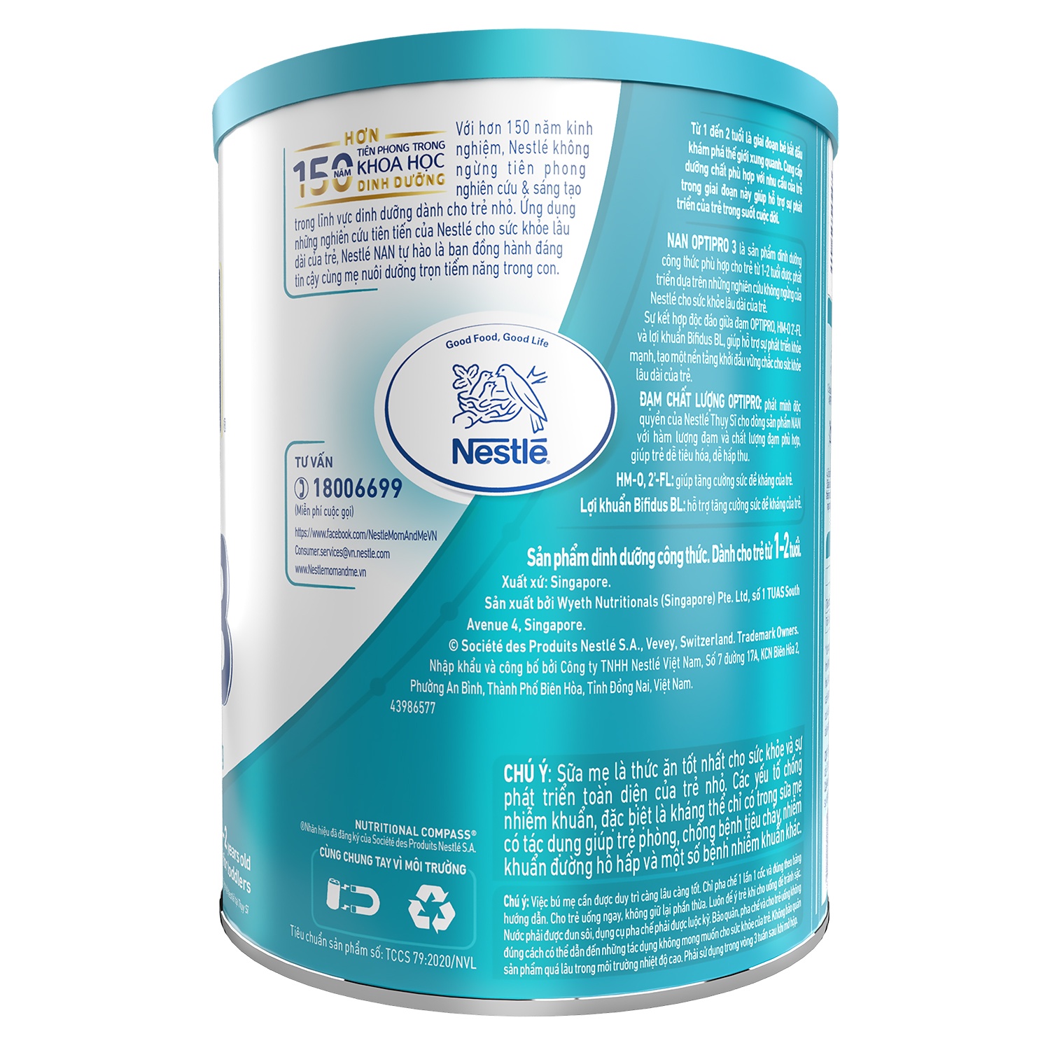 - Sản phẩm dinh dưỡng công thức Nestlé® NAN® OPTIPRO® 3 900g với công thức từ Thụy Sĩ, nhập khẩu chính hãng bởi Nestlé Việt Nam.