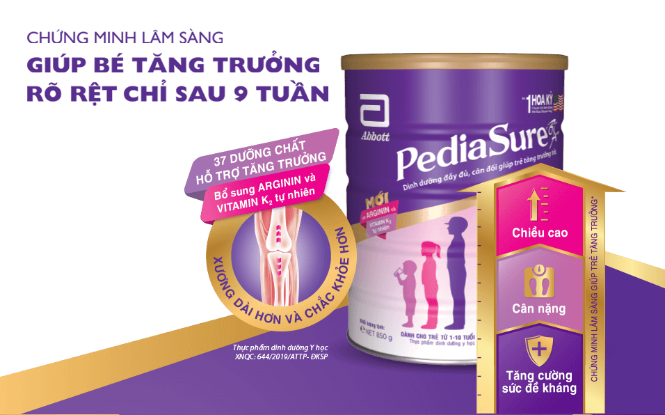 CPP đóng vai trò như “nam châm”, thu hút các dưỡng chất quan trọng như canxi, sắt, kẽm, kết hợp cùng probiotic, prebiotic, vitamin C và vitamin D, hỗ trợ bé hấp thu nhanh chóng và hiệu quả hơn. Nghiên cứu lâm sàng chỉ ra rằng PediaSure giúp trẻ có khả năng tăng trưởng và phát triển chiều cao vượt trội, lên đến 55%.