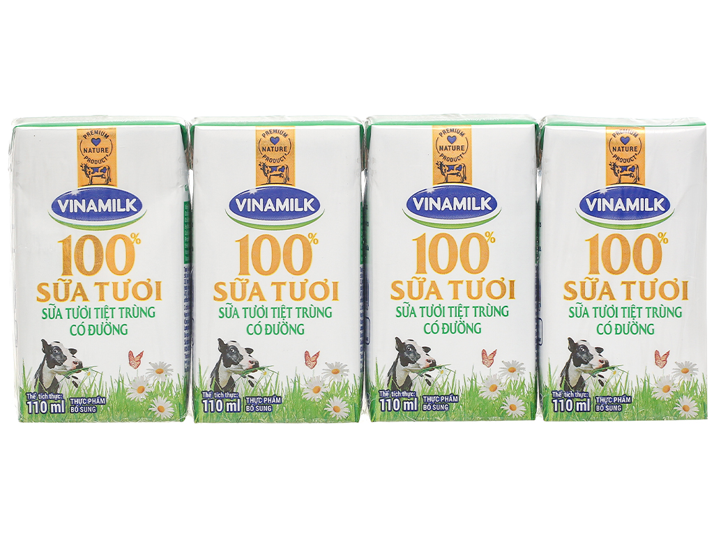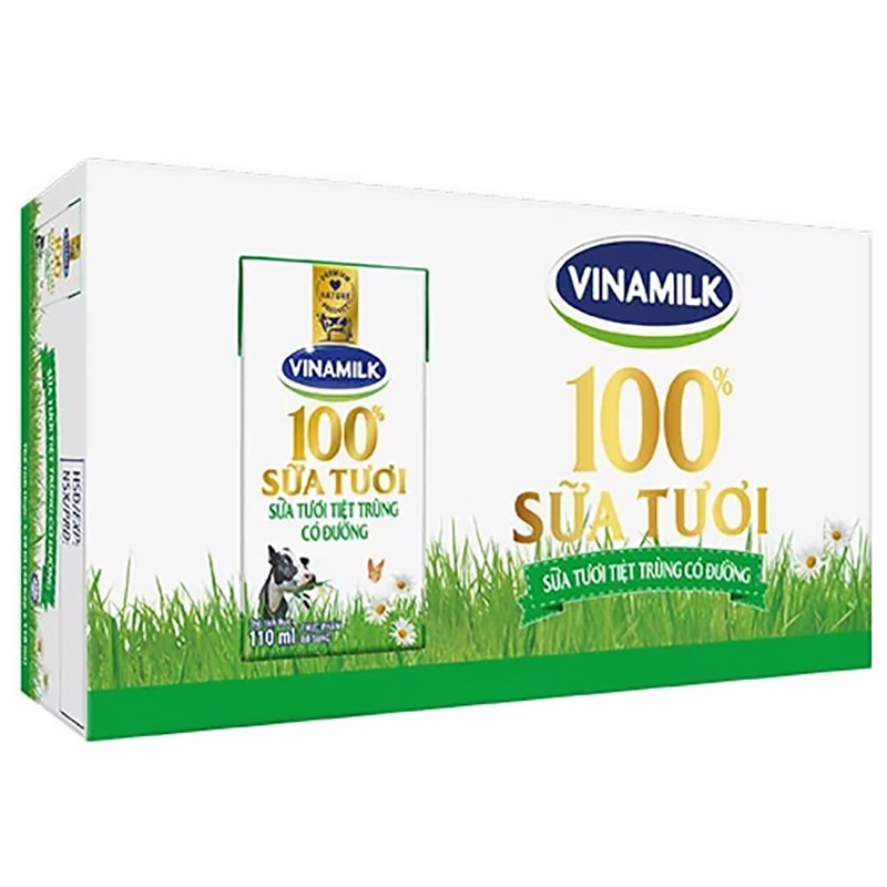 Sữa tươi tiệt trùng Vinamilk 100% có đường 110ml (>1 tuổi)