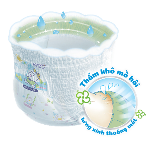 Mặt đáy dạng vải giúp đẩy hơi nóng ẩm ra ngoài, cho tã luôn thoáng khí