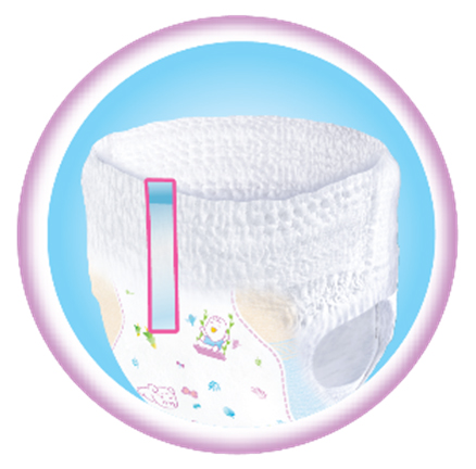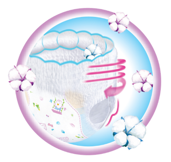 Hệ thun bụng - hông - đùi co giãn siêu linh hoạt, kết hợp cùng lớp vải phủ bằng chất liệu Cotton-soft siêu mềm, giúp tã ôm vừa vặn cơ thể bé, ngăn tràn hiệu quả đồng thời giảm vết hằn trên da.