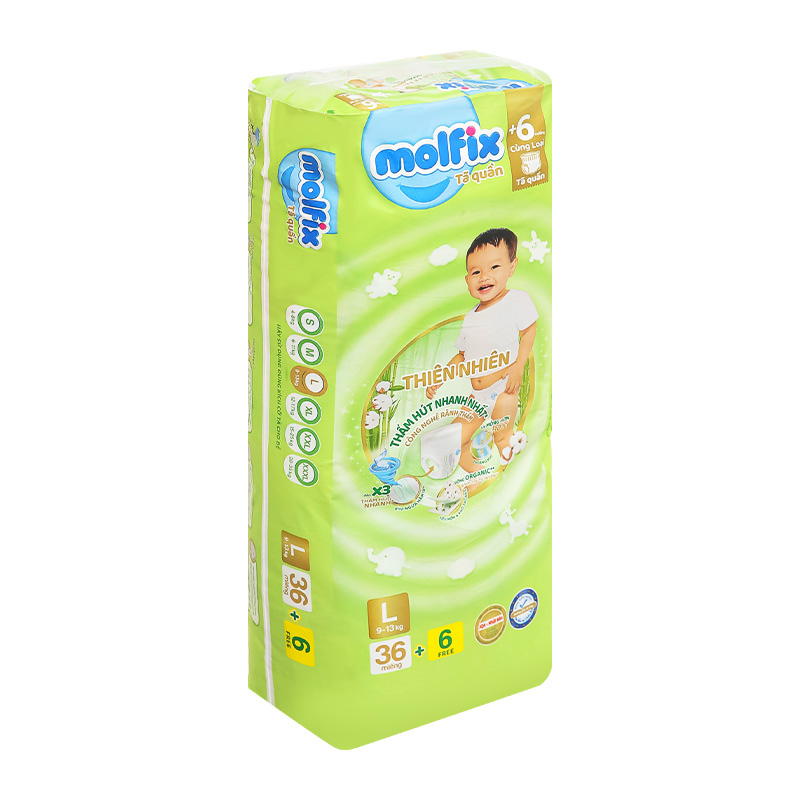 - Thương hiệu Molfix áp dụng công nghệ rãnh thấm đột phá mới với khả năng thấm hút nhanh hơn 3 lần giúp giữ mông bé luôn khô ráo, không ẩm ướt, thích hợp để sử dụng vào ban đêm.