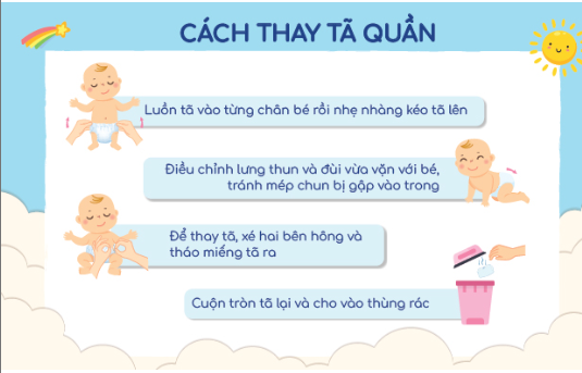 • Bước 4 : Cuộn tròn tã đã sử dụng và bỏ vào thùng rác