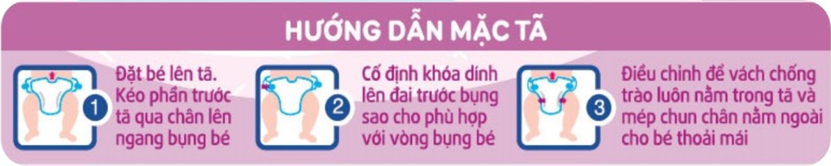 Bước 3: Điều chỉnh để vách chống tràn luôn nằm trong tã và mép chun chân nằm ngoài cho bé thoải mái