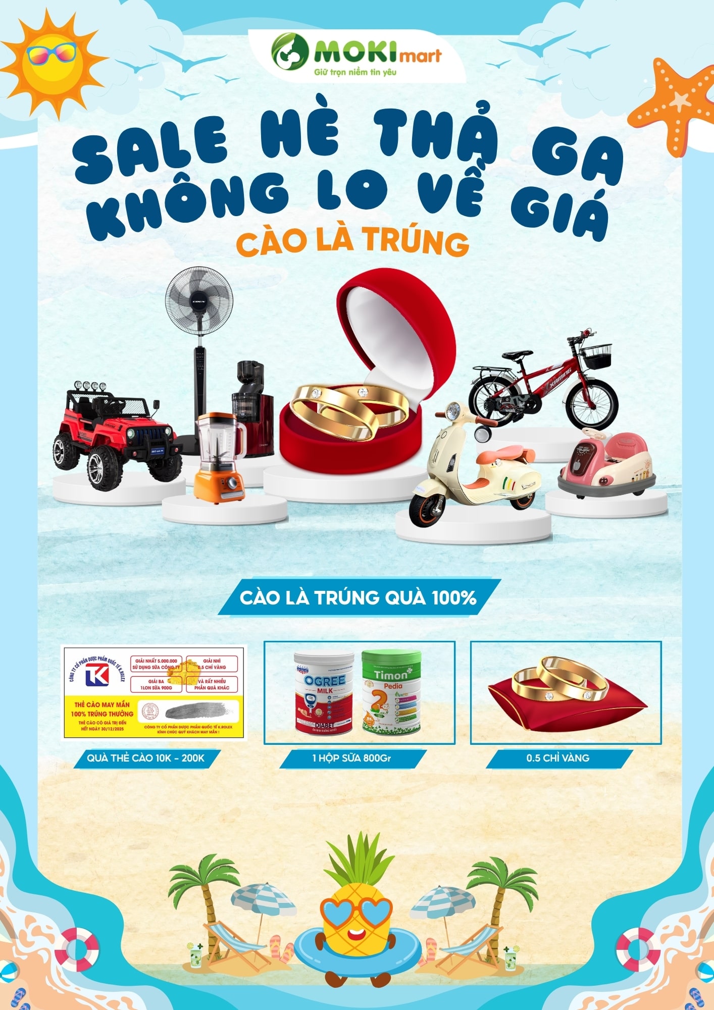 Bạn đã sẵn sàng nhận quà chưa? Hè này, Moki Mart không chỉ mang đến những sản phẩm chất lượng với mức giá siêu ưu đãi, mà còn manmg tới 0,5 chỉ vàng - quà tặng cực giá trị cho khách hàng. Mua sắm càng nhiều – quà tặng càng khủng! Đừng bỏ lỡ chương trình hot nhất mùa hè đang diễn ra tại tất cả hệ thống Moki Mart trên toàn quốc nhé các mom ơi...