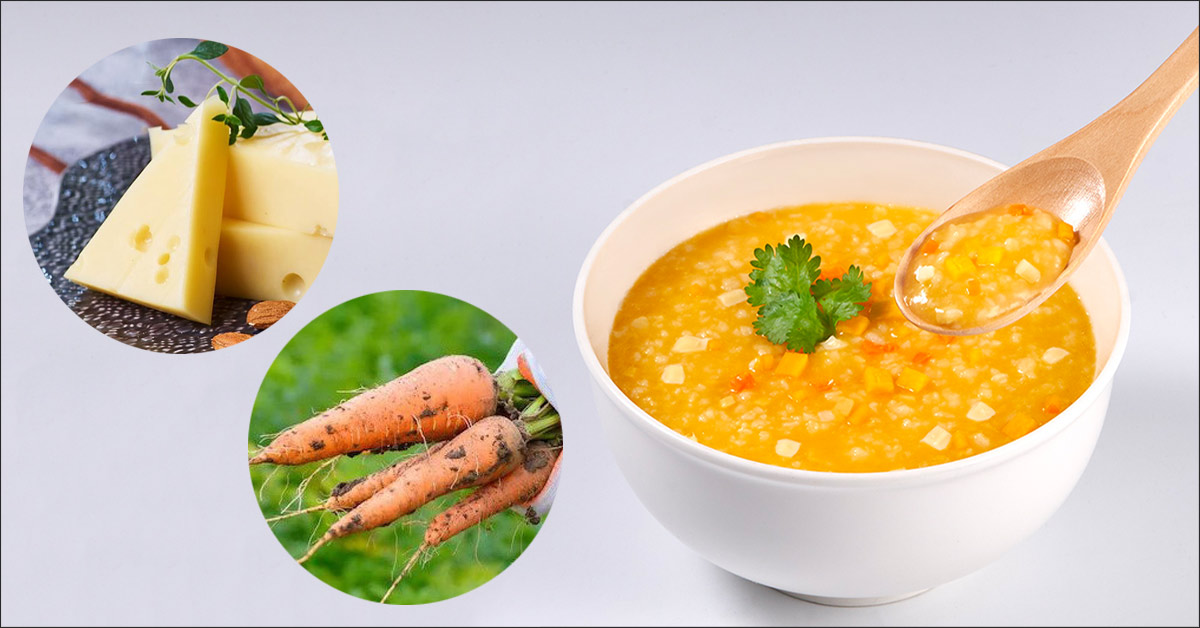 - Tiếp theo, cho từ từ cà rốt vào nồi cháo và khuấy đều để các nguyên liệu quyện vào nhau sánh mịn.