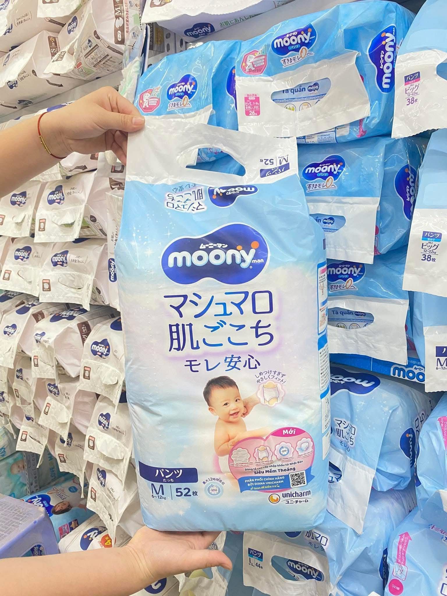 Moony là dòng bỉm cao cấp đến từ Nhật Bản, nổi bật với chất liệu mềm mịn và khả năng thấm hút tốt. Sản phẩm thường được đánh giá cao nhờ thiết kế ôm vừa vặn theo cơ thể trẻ sơ sinh, hạn chế tràn hiệu quả.