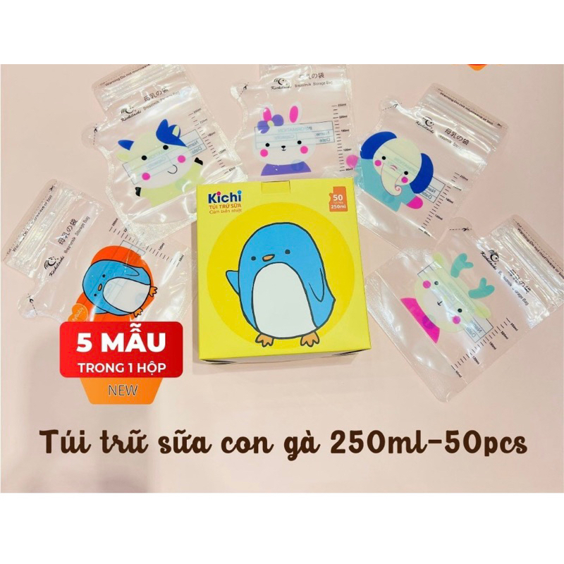 Túi Trữ Sữa Kichilachi Cảm Biến Nhiệt Độ, Có Khóa Zip Chắc Chắn Chống rò Rỉ, Dung Tích 250ml.