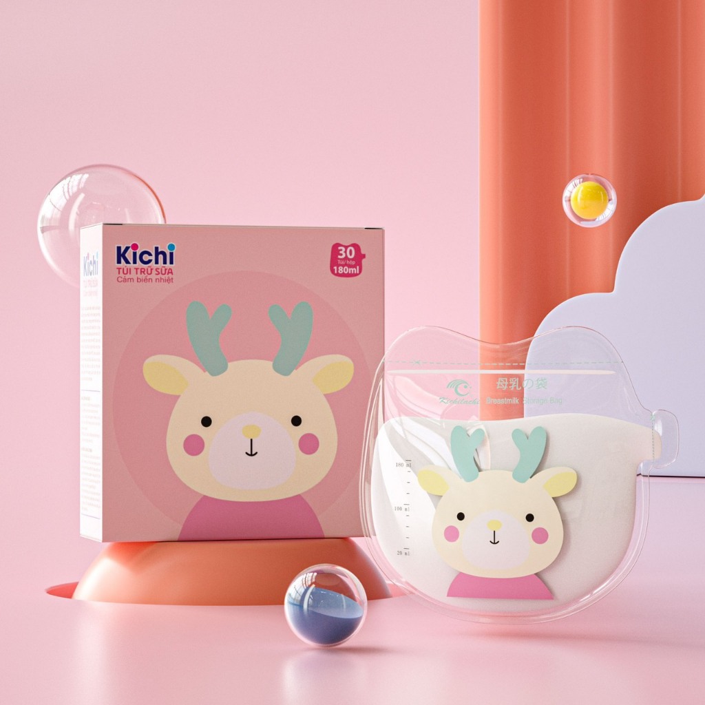 Túi Trữ Sữa Kichilachi 180ml- Cảm Biến Nhiệt Độ, Có Khóa Zip Chắc Chắn Chống Rò Rỉ